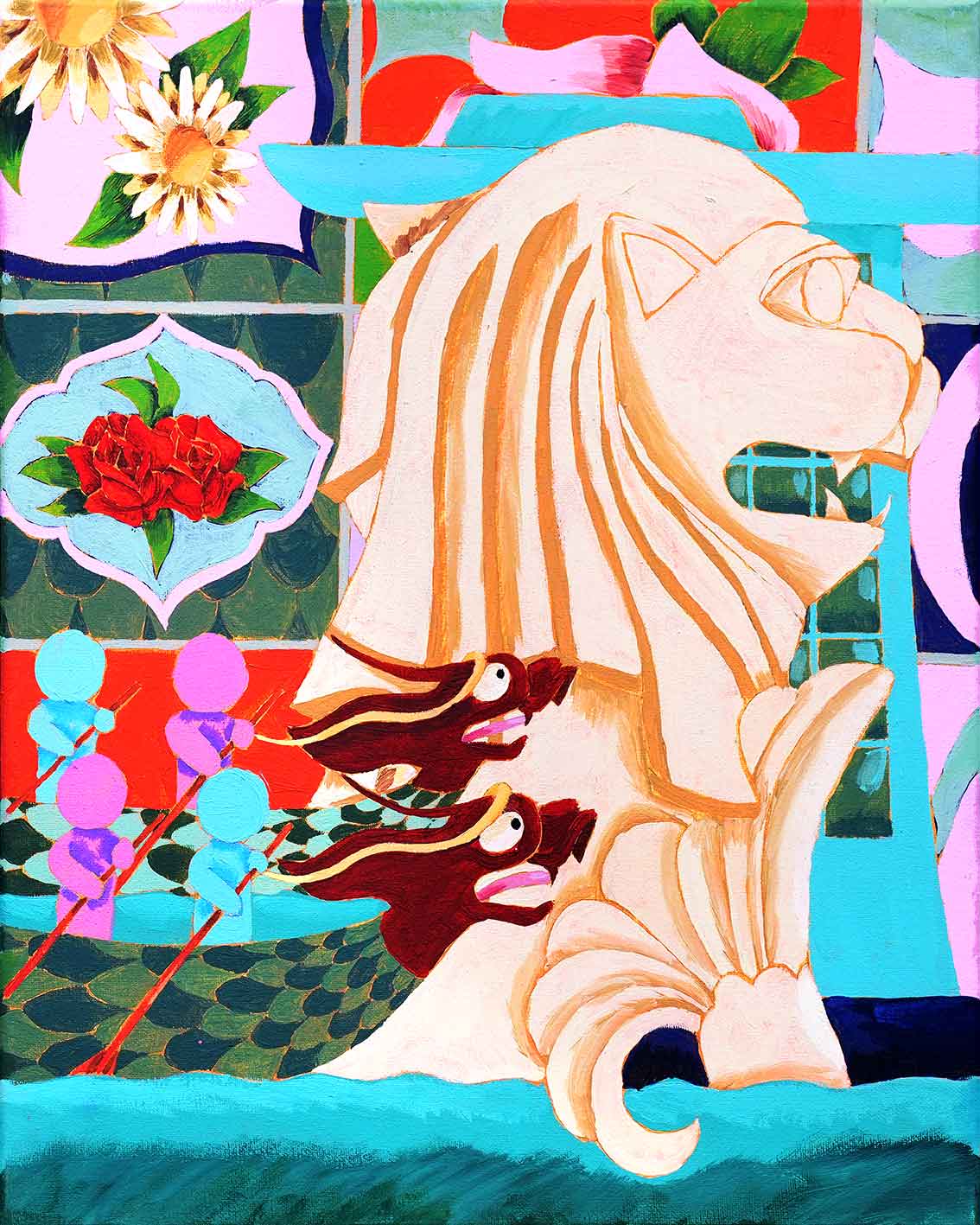 Ashley’s artwork brings together some of Singapore’s most recognisable cultural and visual symbols in a joyful, celebratory composition. At its heart, the Merlion. A proud emblem of national identity, a dynamic dragon boat race surges across the foreground, capturing the spirit of unity, strength, and tradition. The backdrop features the geometric beauty of Peranakan tiles, adding a touch of heritage and intricacy. Towering above it all is the iconic silhouette of Marina Bay Sands, a modern marvel that reflects the nation’s forward-looking spirit. Through this piece, Ashley creates a harmonious tribute to Singapore’s rich identity full of colour, movement, and pride.