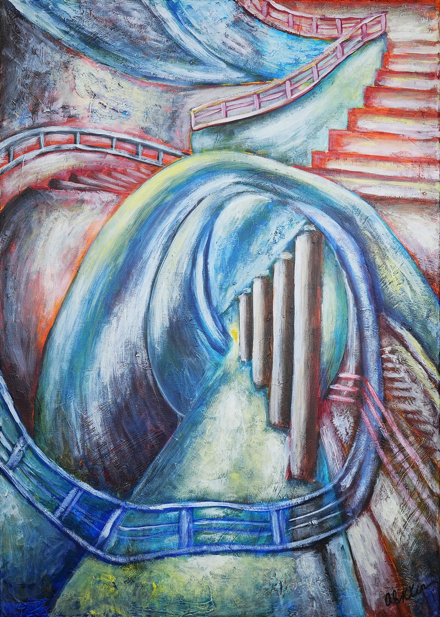 "Destiny" captures a myriad of pathways, each a metaphor for the many choices that lie before us in life. To navigate them, one must be courageous and wise. Every path in the painting point heavenwards, a reminder that, despite the obstacles and roadblocks we may encounter, there is always a way through when we seek God's guidance. No matter what choices we make, so long as they align with His mission for us, they are the right decisions.