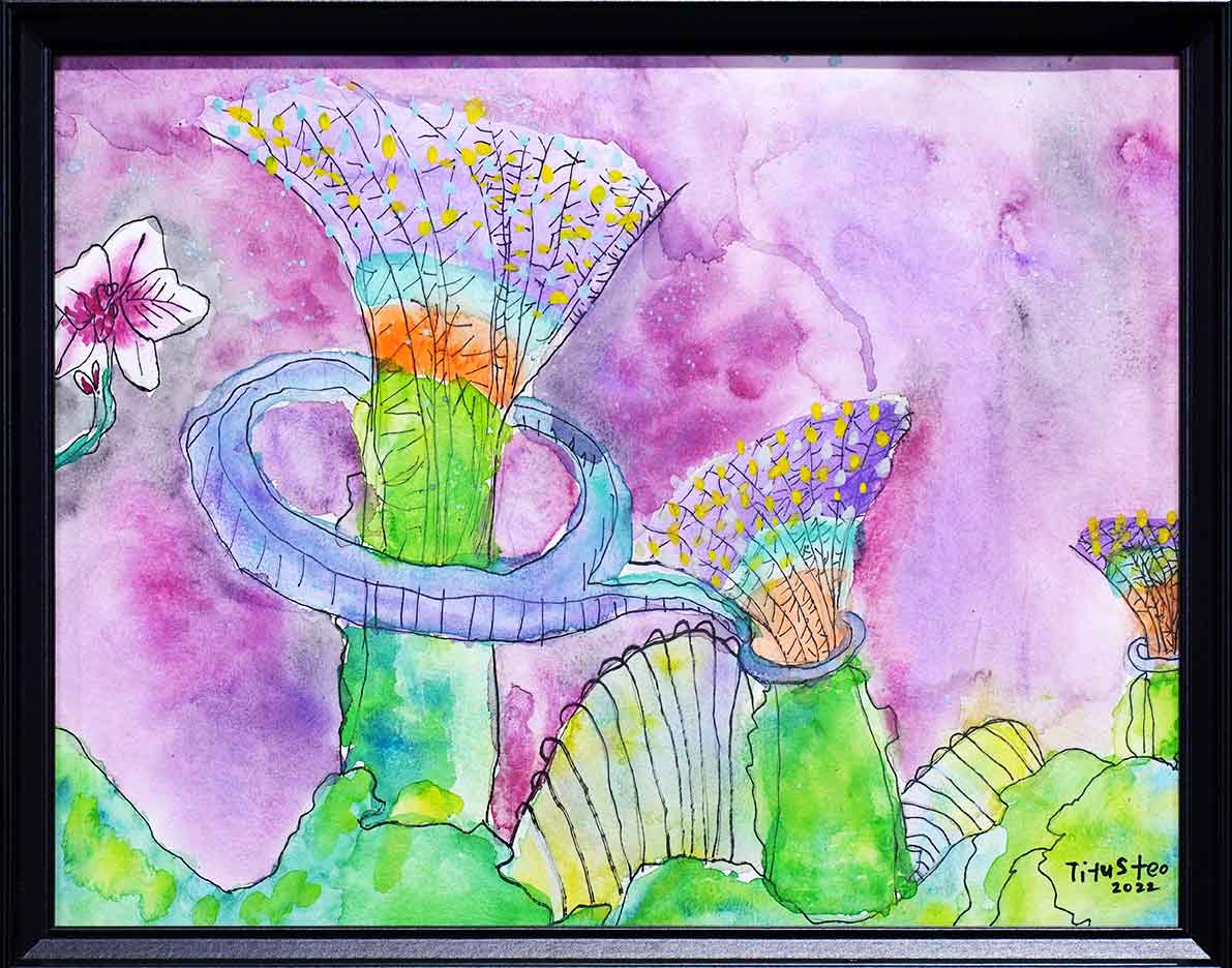 Gardens by The Bay is indisputably Singapore’s premier horticultural attraction and a national garden that captivates both local and international visitors. The painting is a showcase of garden artistry and botanical wonder, reimagining the plant kingdom through innovative design and immersive landscapes. Situated opposite the Singapore Flyer and Marina Bay Sands, it stands as an iconic feature of the city skyline: a symbol of Singapore’s vision for a green and liveable future.