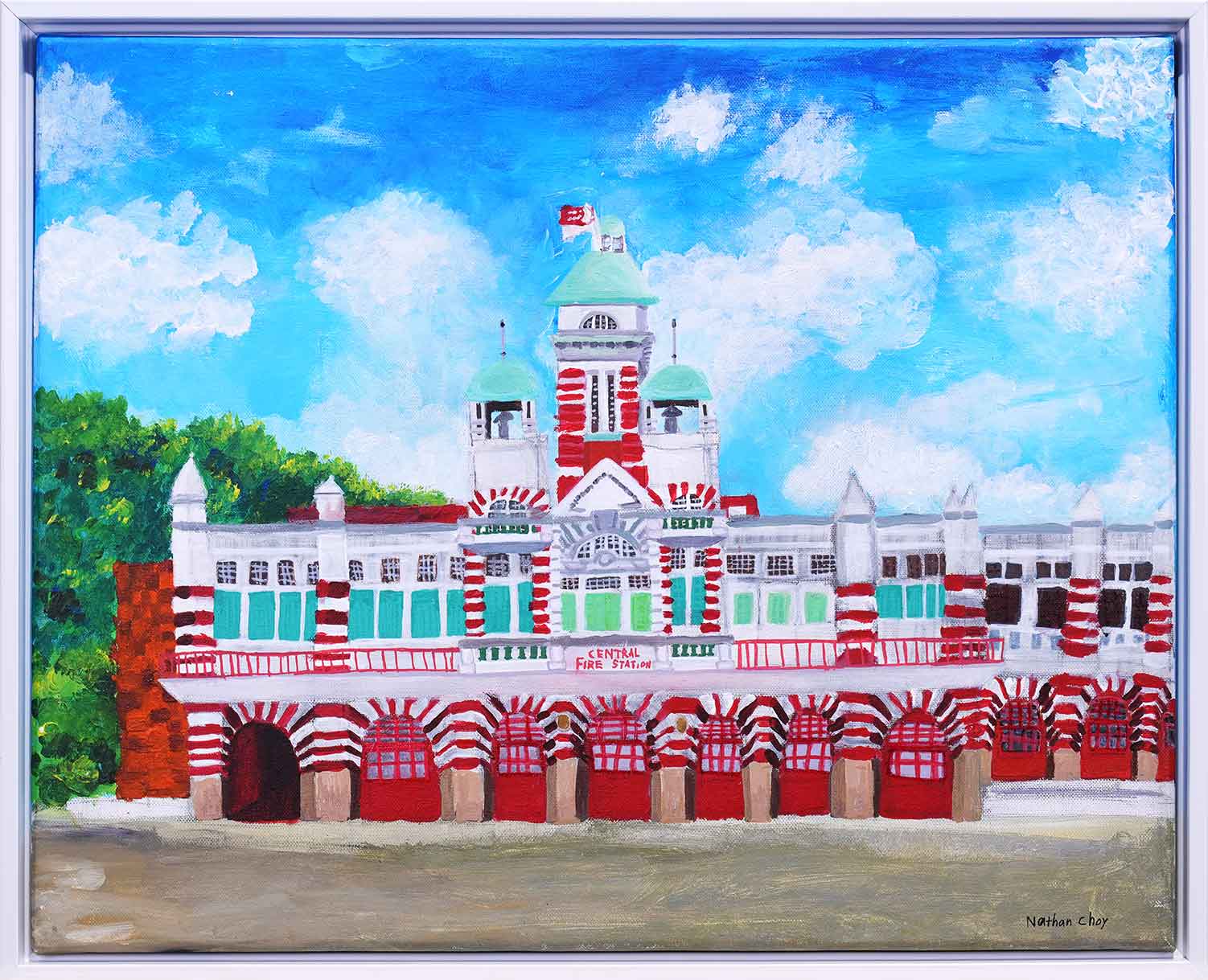 This artwork captures the timeless charm of Hill Street Central Fire Station, one of Singapore’s oldest landmarks. Its bold red-and-white façade, arched windows, and clock tower stand proudly against a bright blue sky with drifting clouds. The contrast between the vibrant sky and the station’s striking colours highlights its enduring presence — a symbol of safety, service, and history in a rapidly changing city. Through this piece, the artist hopes to evoke a sense of nostalgia and appreciation for Singapore’s heritage.