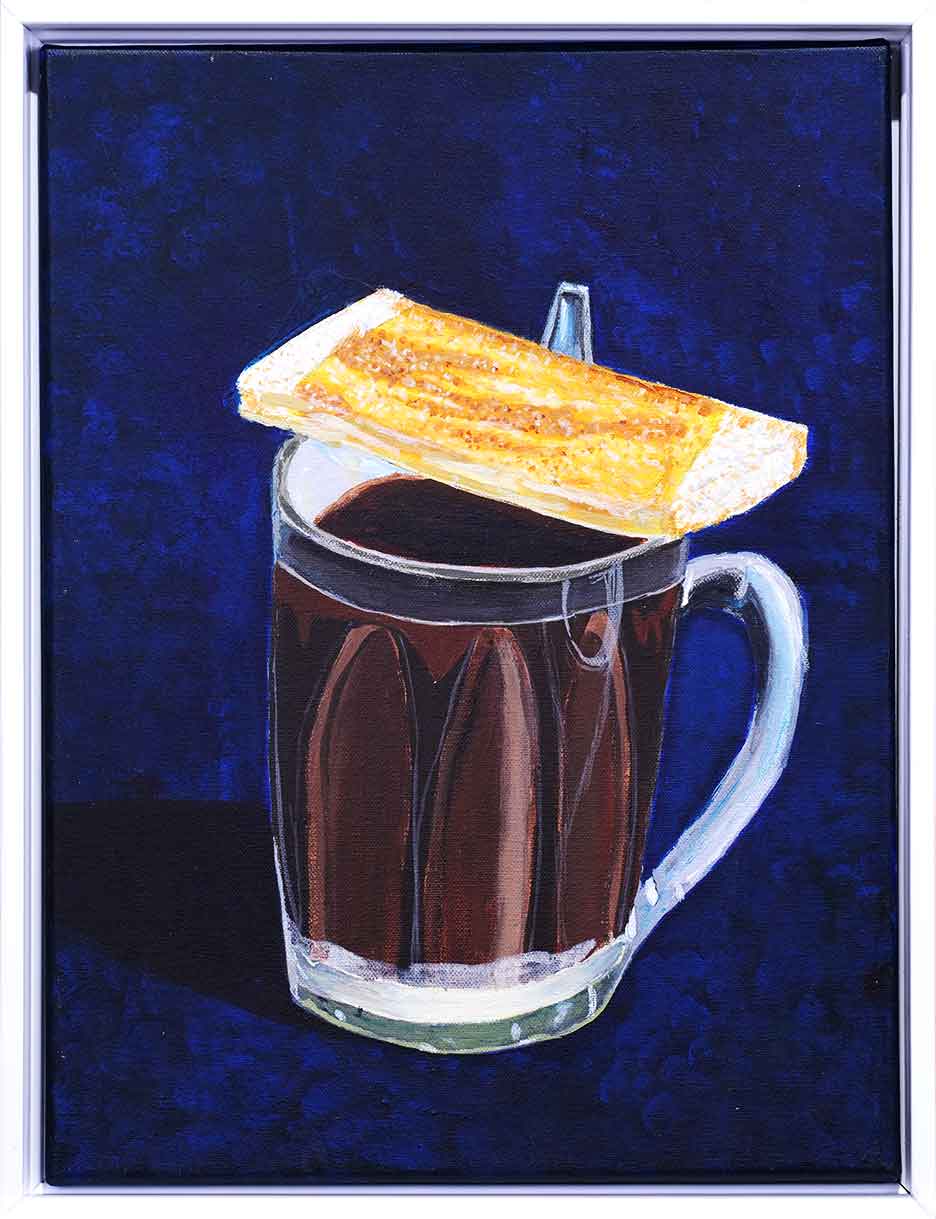 The artist beautifully captures an iconic and comforting scene from everyday Singaporean life—traditional kopi paired with kaya toast. This evocative composition stirs nostalgic memories of simple, heartwarming breakfasts at local kopitiams, where the aroma of freshly brewed coffee and the taste of crisp toast provide a moment of quiet joy in the hustle of daily life.