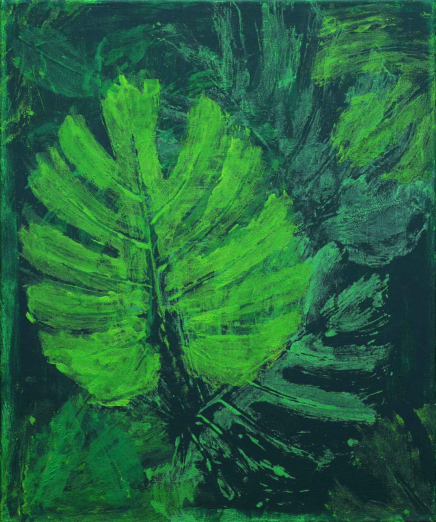 "SG Nature’s Imprint V1" shows many green leaves, coloured with different shades of green. Each leaf leaves behind more than a mark — it leaves a memory. Pressed delicately onto the canvas, these natural stamps capture the beauty of nature's design: soft veins, curved edges, and textured lines. This piece is a gentle reminder for viewers to appreciate the beauty of nature and the quiet wonder that is found in the simplest forms of life.