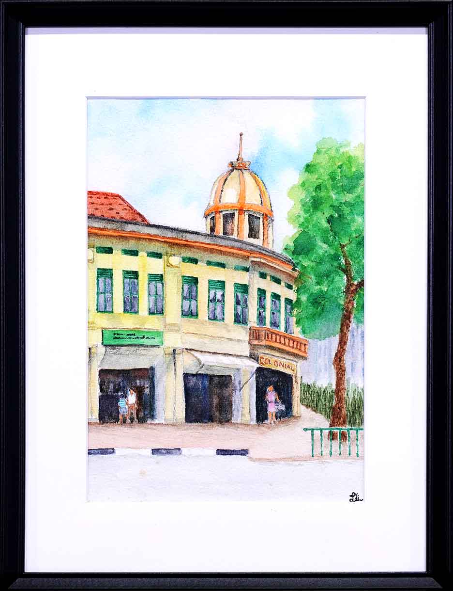 Represented by soft yellow with green-framed windows and a red-tiled rooftop, the building carries a warm, familiar charm. Its colours shift with the time of the day, transforming its unique charms. Its ground floor is home to a mama shop, a bistro café, a fruit stall, and small eateries, each a part of its evolving story.