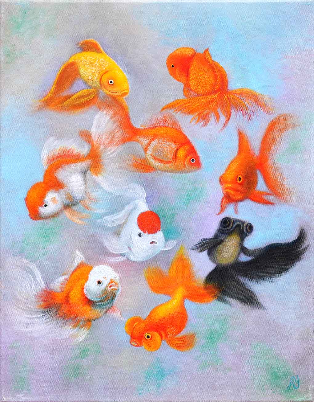 “Stay Gold” shimmers with quiet grace. It is a portrait of peace in motion. Golden fish drift like living brushstrokes through still water, as they swim together in a graceful, synchronised dance. Their delicate movements and bright colours ripple across the canvas, casting a glow that soothes the spirit and stills the mind. In their gentle, unhurried path, we are reminded to slow down, breathe, and find beauty in the present moment. Let this painting inspire you to protect the light within you — to move through life with grace, to honour your truth, and "stay gold".