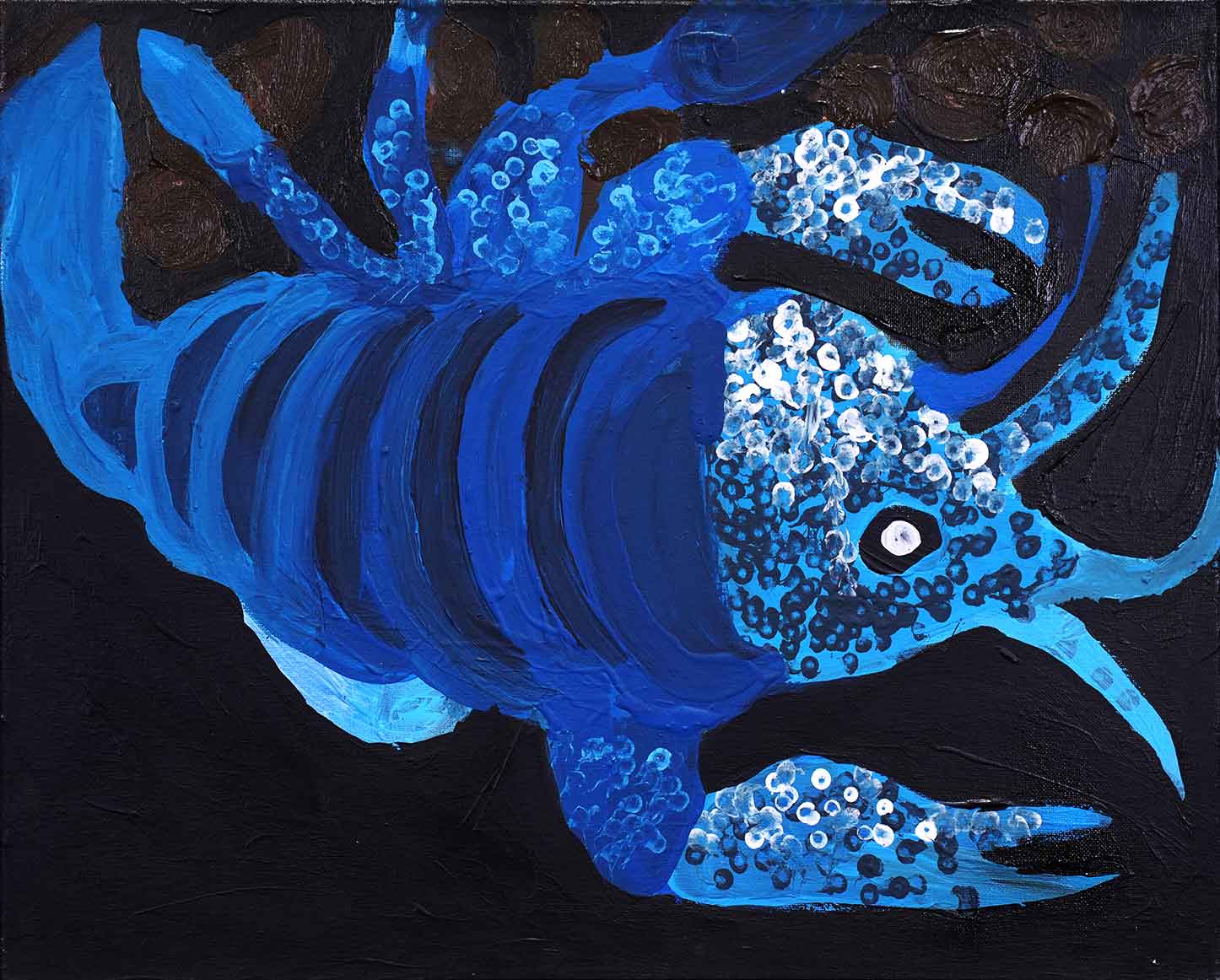 Occasionally seen at the S.E.A. Aquarium, the rare blue lobster is painted in surreal blue tones that accentuate its uniqueness. Joshua’s vivid use of blue highlights the lobster’s rarity, drawing attention to its striking beauty and exceptional allure. The bold colours evoke a sense of wonder, inviting the viewer to appreciate the extraordinary in nature’s more elusive creations.