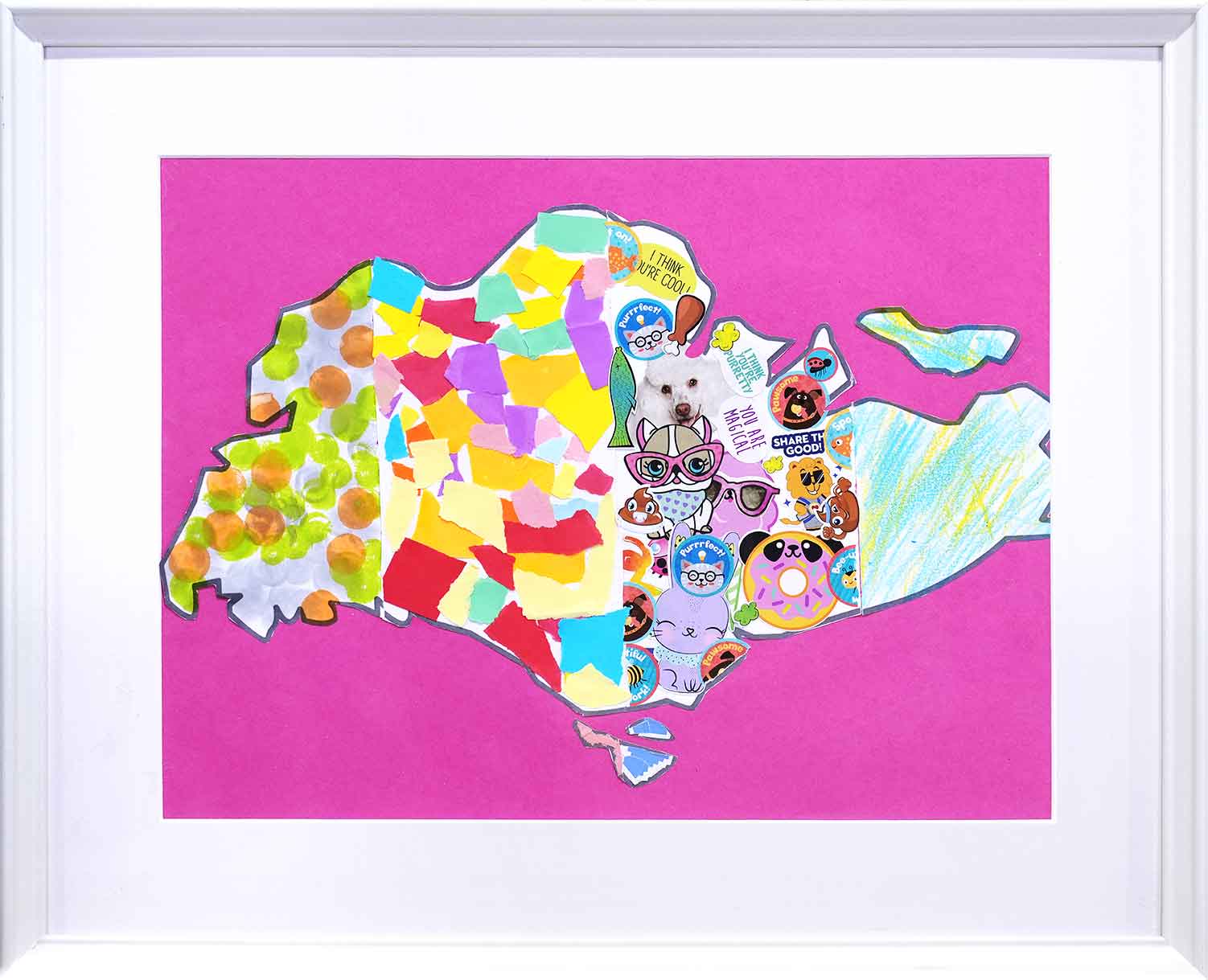 This artwork commemorates Singapore's 60th anniversary of independence, tracing the island’s familiar outline through four distinct mediums. Each medium represents one of Singapore's major racial groups — Chinese, Malay, Indian, and Eurasian — brought together in a graceful yet enduring homage to Singapore’s multicultural identity. Bound by diversity and strengthened by unity, these elements come together as one, reflecting the harmony that has shaped Singapore’s journey and continues to guide its future.